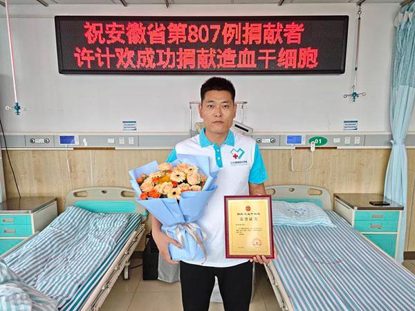 近日,在合肥一家醫(yī)院,來(lái)自宿州的退役軍人許計(jì)歡經(jīng)歷4個(gè)小時(shí)的采集后,捐出一袋“生命的種子”,為一名遠(yuǎn)方的血液病患者點(diǎn)亮希望之光。